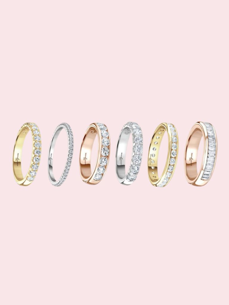 You can also combine metals, for example matching a platinum setting with a gold band.
