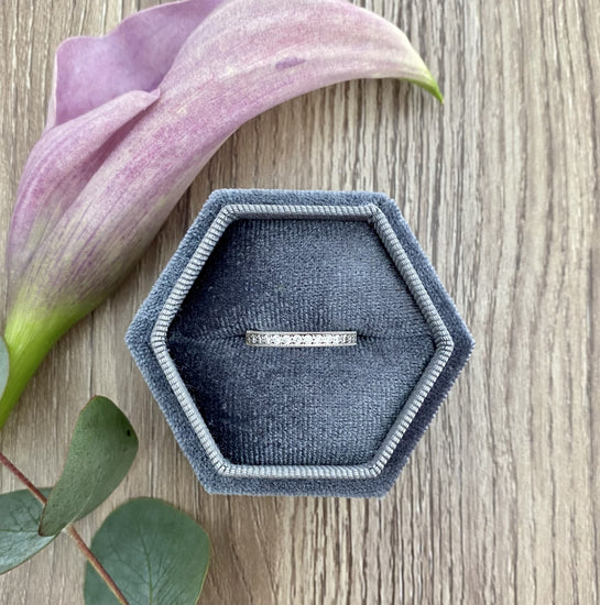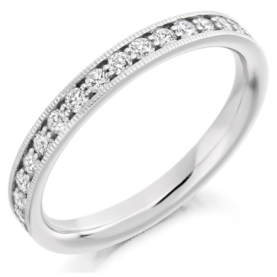 This Grain Set Diamond and Platinum Full Eternity Ring makes a stunning wedding or eternity ring. A milgrain edge around the ring gives it a vintage feel.