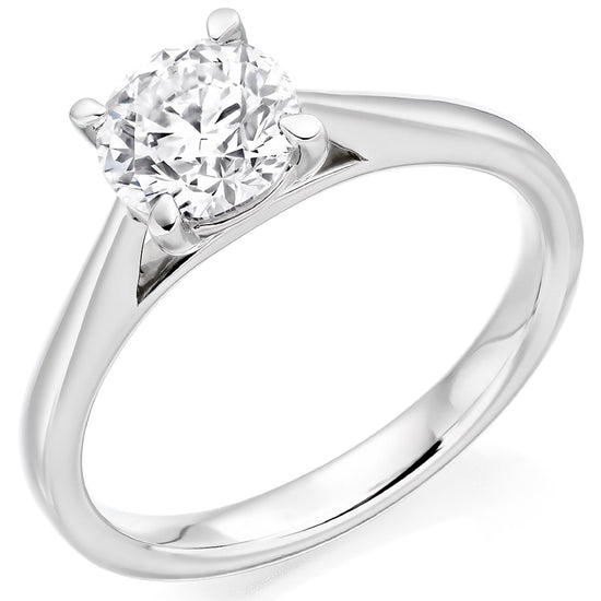 The classic round brilliant cut enhances the diamond's natural fire and sparkle, making it a true symbol of enduring love. Meticulously crafted with attention to detail, this solitaire platinum engagement ring exudes classic style that will never go out of style.