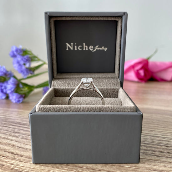 This timeless design features a magnificent 1ct E colour lab diamond. The solitaire diamond is the star of the show, radiating brilliance and captivating the wearer and everyone around. With exceptional VS1 clarity, the diamond has exceptional transparency and sparkle for a breathtaking appearance.