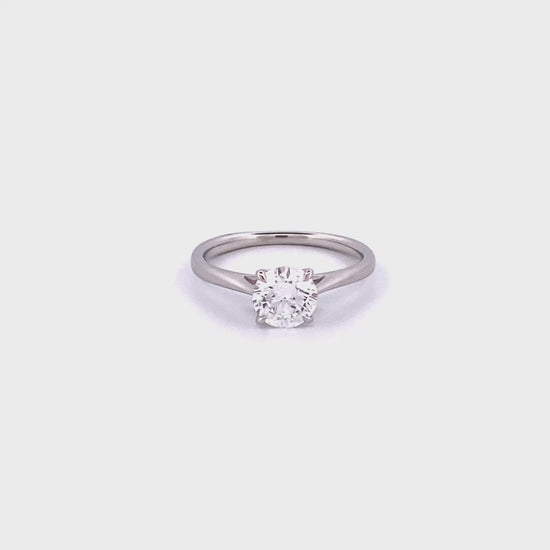 Make a statement with our spectacular lab grown one carat solitaire engagement ring. The round brilliant cut lab created diamond engagement ring is expertly handcrafted in platinum. Lab created diamonds are chemically identical to natural diamonds but are created in a more environmentally friendly way at a more affordable price.